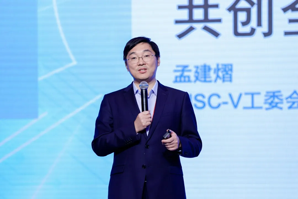 RISC-V工委会轮值会长、知合计算CEO孟建熠发表“共建智能计算标准,共创全链开放生态”主题演讲时指出,RISC-V以开放、定制与能效等优势,是最适合AI时代高性能CPU的架构。RISC-V工委会作为国内标准建设组织方,组织会员单位逐步完善了RISC-V团体标准的立项流程和标准体系,正大力推动RISC-V走向“技术-产品-生态”的发展之路。